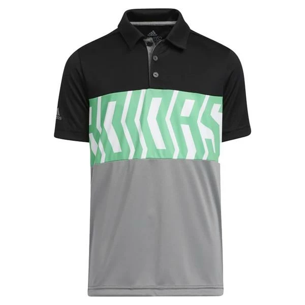 adidas Junior – Boys Print ColourBlock Polo Shirt Black – Semi Screaming Green