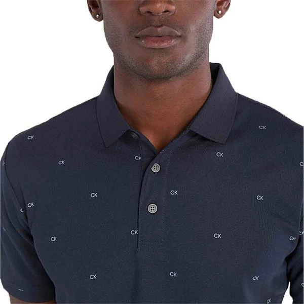 Calvin Klein Golf Gents Monogram Pique Polo Shirt Navy Arctic Ice