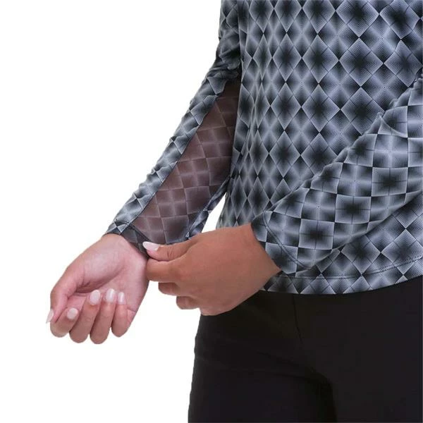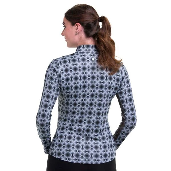 EPNY Ladies Long Sleeve Argyle Optical Zip Mock Black