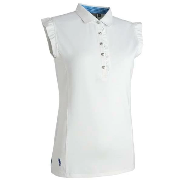 Glenmuir Ladies Ruched Placket Gingham Sleeveless Performance Polo Shirt White
