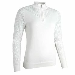 Glenmuir Ladies Silvia Zip Neck Pointelle Cotton Sweater White