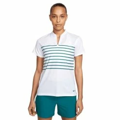 Make your way comfortably across the course in the lightweight, breathable Nike Women’s Dri-FIT Victory Striped Golf Polo. Nike Dri-FIT helps keep y ou dry and comfortable while a V-neck and low-profile blade collar provide a modern twist.