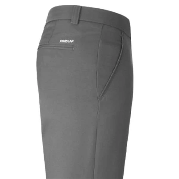 The ProQuip Technical Performance Golf Trousers feature breathable, easy-care fabric and a Durable Water Repellent finish for complete comfort on the course. The Water Repellent finish means that rain will bead off the trousers rather than soaking straight in, so you stay drier for longer if you’re caught in a light shower. There are two front pockets, an inner pocket on the right side for tees etc. and a further two pockets at the back. Stretch fabric allows you to move freely through your game and gripper tape inside the waistband helps keep shirts tucked in place through your swing. ProQuip branding above the front left and back right pockets finishes off the look.